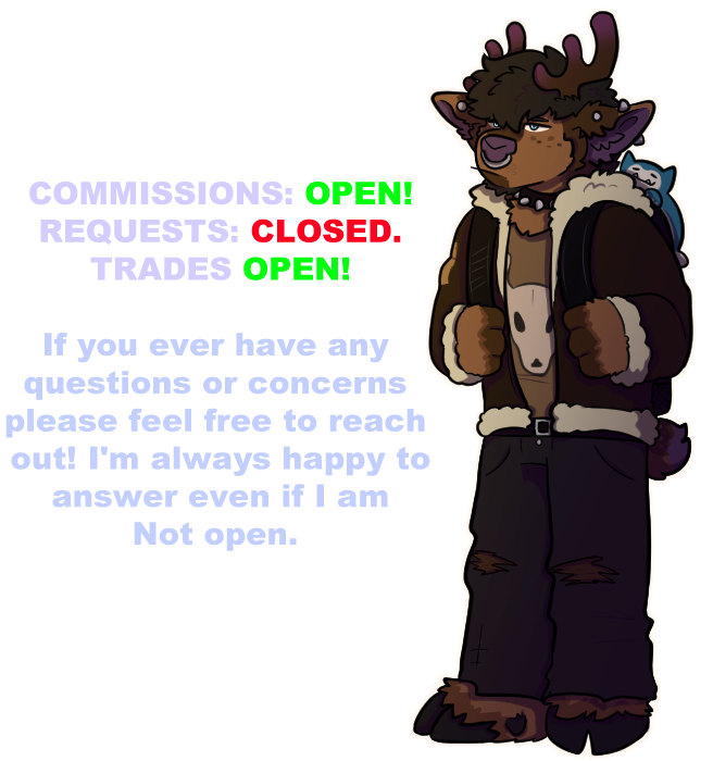 For Payments over 50 USD Dollars, I will send an invoice.When sending the payment, please include your username to avoid confusion! ||Be nice. There is no punishment for not being as nice during the commission process but you can be denied next time you wanna commission me.Please be considerate and remember that I have a life outside of commissions as a fulltime student. Due to that getting a result might take a while, but don't be afraid to remind me.I have the right to refuse any commission with or without providing an explanation.